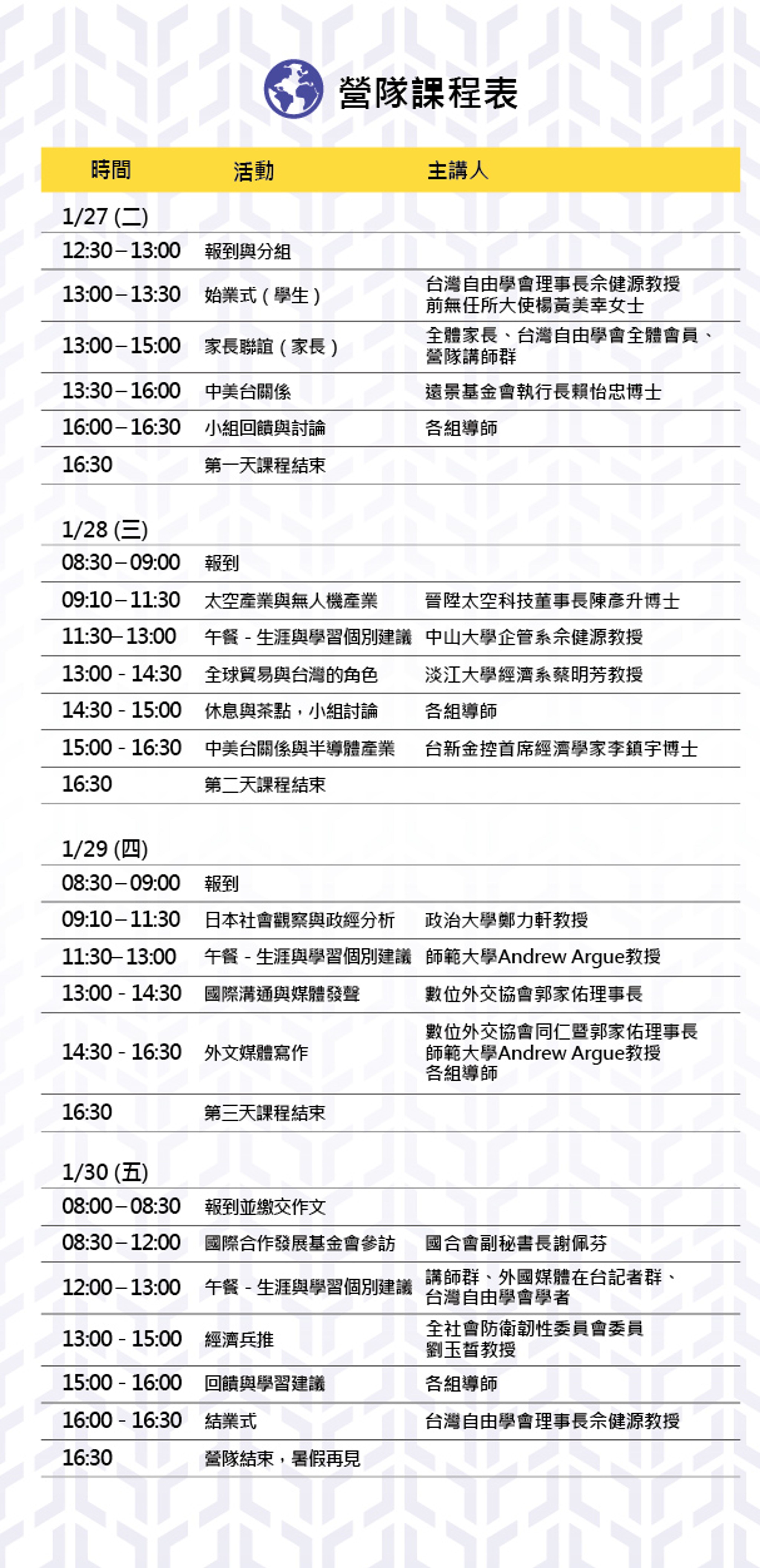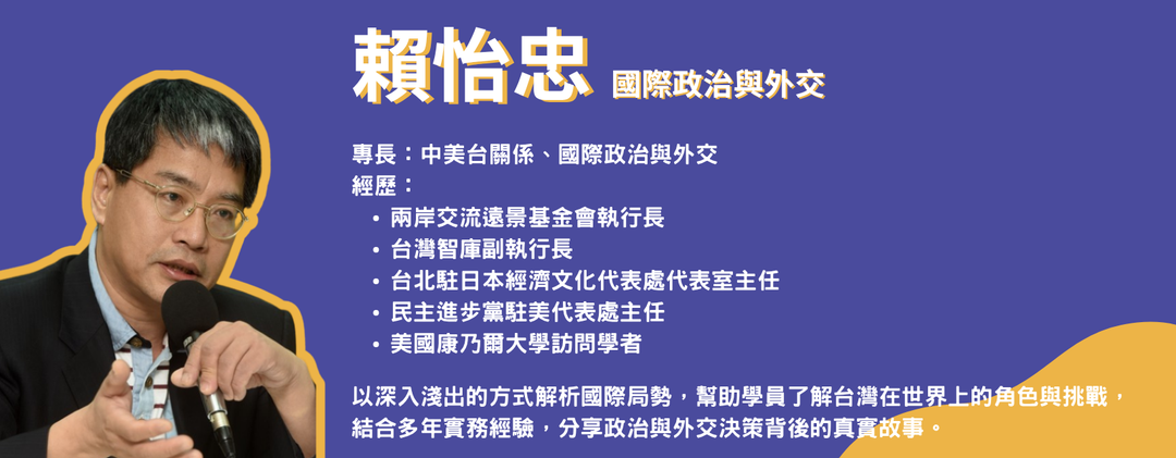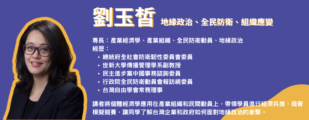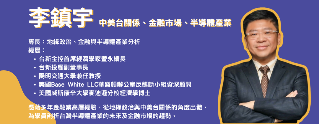 國際政經素養:以「地緣政治 × 全球經濟 × 產業布局」為核心架構,邀集各界專家分析中美台關係、產業鏈、科技戰略,充實學員對於地緣政治與全球經濟的理解。